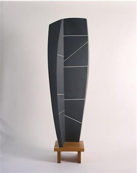 Curator: Standing before us is "Balkis" by Étienne Hajdu, a bronze sculpture crafted in 1966. My initial reaction is that it's incredibly imposing, almost monolithic. Editor: Monolithic is interesting. It's quite stylized, a slender pillar of dark metal with these flattened, almost wing-like forms emerging at the top. It reads as abstract but also possesses an undeniable organic quality. The smooth surface invites touch; you can almost feel the heat from the casting process. I wonder about the foundry where it was created. Curator: Absolutely. Considering Hajdu's abstract expressionist background, his material selection plays a crucial role. The bronze provides permanence, yet also lends itself to capturing the flowing, organic forms he favors. And given the date, the postwar context certainly inflects its somber tones; bronze often represents something that can resist time, or last, in the wake of turmoil. Editor: True. It makes you think about process and time...The forms are so simplified and sleek but the material whispers a longer story. It seems both timeless and anchored to a very particular moment in the history of sculpture. Did he typically work with bronze at that period? Curator: While Hajdu experimented with multiple media, he seemed to privilege forms made possible through carving marble, and then also employed bronze for achieving lasting statements during his mid-career phase. He clearly leveraged the tactile possibilities of each medium, to convey different dimensions of geometric or representational subjects. He wasn't only interested in the object itself, but in the process behind creating it. Editor: The choice certainly amplifies its presence. In a way, the wings on the top lend it such incredible expression: it resembles a symbol for an angel, ready to descend. Despite the weight of the bronze. Or even better: imagine that form slicing through the air? Curator: Right—that duality of heaviness and lightness, rooted in his interest with form, really defines this work, it invites dialogue, perhaps also in that fraught political period where certain conversations were stifled in post-war culture. Editor: Absolutely, that balance is beautifully struck. Makes me think more deeply now of it capturing both fragility and power simultaneously. It holds many secrets, this “Balkis.” Curator: I agree— it invites contemplation not just of its aesthetic value, but also its complex manufacturing origins. It leaves us to imagine many narratives indeed.
