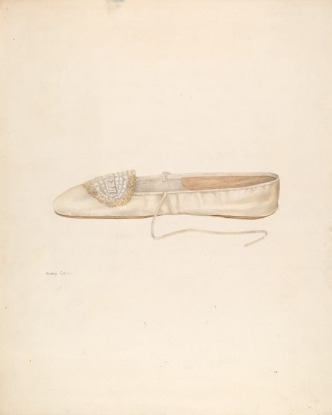 Curator: This serene piece is titled "Butter Tub," crafted by Edward Unger around 1939. He employed watercolor and drawing techniques on paper to create it. Editor: It evokes a peculiar stillness. The wood grain seems aged and hushed, but also like it’s about to tell a story. I see years of use etched into its surface. Curator: Unger had an eye for the commonplace, elevating everyday objects. In the 1930s, this kind of utilitarian object symbolized a connection to a simpler rural life. The country was still feeling the pains of the Depression, which could trigger these kinds of aesthetic sentiments. Editor: Exactly, these are tools to keep going, the everyday icons. Do you see any symbolism in the container, perhaps reflecting something about containing emotions or perhaps about communal existence, you know like serving the food? Curator: I like your thinking. This vessel certainly becomes more than just something for butter. It represents sustenance, memory, perhaps even the immigrant experience holding a cultural history as people brought family recipes and customs to America. Editor: I am thinking if such tubs were central objects around which communal experiences evolved, ones laden with significance that extended beyond pure functionality? I imagine such tub represented so much to those using it daily, the heart of the family routine in that moment in history. Curator: That makes me consider the public role of art like this during times of transition. Maybe Unger wanted to acknowledge those lives and routines, to validate these often unseen communities with the quiet dignity found here. Editor: A potent message. Unger provides such a grounded counter-narrative that celebrates simplicity, resilience, and an enduring culture rooted deep within an honest day's toil. Curator: Precisely. We are drawn into an unassuming portrayal. The composition, however basic it looks, allows us to focus on the tangible history. We, perhaps, find a hidden beauty or a lasting legacy from the artist, from the people portrayed, and ultimately from our very own past.