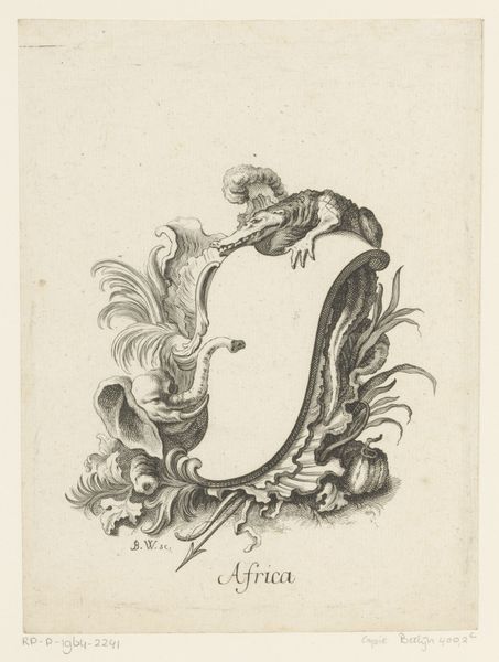 Curator: Hello, and welcome. I’m here to tell you about a piece from the Metropolitan Museum of Art, an etching titled "Plate from Book of Vases," dating from sometime in the 1700s. It’s attributed to Jacques de La Joue the Younger, a French artist known for his ornamental designs. Editor: My first thought? Drama! There’s so much theatrical flair packed into this monochrome print, like a miniature stage set. The whole thing seems to surge upwards in a crescendo of curls, shells, and figures, defying gravity. Curator: That’s a perfect observation. These kinds of ornamental prints served as source material, demonstrating design possibilities. The etching could guide the creation of actual objects, architectural features, and interior embellishments, effectively shaping aesthetic trends of the time. Editor: So, this wasn’t necessarily meant to be art for art's sake. It's like an 18th-century mood board! And, you know, seeing this intricate cascade of… stuff… makes me wonder what these vase books tell us about the culture of display back then. It seems people really liked to SHOW OFF. Curator: Precisely. These elaborate designs were emblems of status and refinement, reflecting a society that valued ornamentation. What's interesting, too, is that artists like La Joue circulated their ideas this way. These prints democratized design somewhat, moving ideas from the palace and estate to wider workshops. Editor: Hmm. Democratization by way of ornamentation – that’s a delightful paradox! For me, there’s a real visual energy at play too. My eye dances from the reclining lion at the center to the triumphant figure at the very top, not to mention the cascade of water beneath. Even though it’s a still image, it conveys movement. Curator: The use of line is incredibly skilled; La Joue achieves remarkable depth. And of course, there's the idealised nude figure. These classicizing motifs connect back to ancient Greece and Rome, echoing power and intellect. These images weren’t just decorative; they were imbued with a cultural value system. Editor: Well, after all this context I now find myself daydreaming about the artisans who looked at these plates, figuring out how to transform those lines into something real and touchable. Curator: It's these dialogues, tracing art’s cultural journey from concept to object, that enrich our appreciation. Thank you for considering "Plate from Book of Vases" with me today. Editor: And thank you, let the conversations continue!