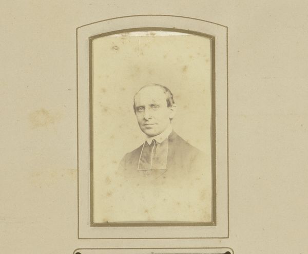 W. Vester’s small photographic portrait depicts a man with glasses. The image’s appeal may lie in its demonstration of photographic technology, which was still fairly new when this was made. In the Netherlands, as elsewhere in Europe, photography's rise was concurrent with the development of new modes of seeing and understanding the world. The small size of this print suggests it may have been designed to fit in a family album or locket, suggesting that the subject was someone of personal significance to the owner. The man’s dark suit and clerical collar are suggestive of religious affiliation and are indicative of social status. The advent of photography democratized portraiture, making it accessible to a wider range of social classes, but it also introduced new forms of visual representation and social hierarchy. To better understand this image, historians might research the history of photography in the Netherlands. They might consider the ways in which photographic portraits were used to construct and reinforce social identities, religious affiliations, and class distinctions during this period.