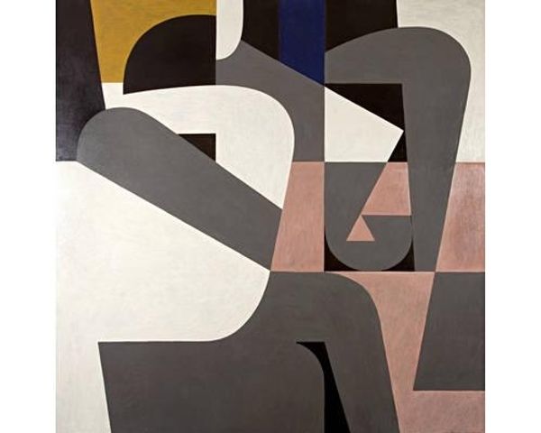 Hans Hinterreiter made 'Opus 153' in 1963, with what looks like gouache or tempera, on paper. It's all about these angular stripes, kind of like a maze but also suggesting some kind of folded-up space. I love the way Hinterreiter uses color here. It’s not just decorative; it's structural. The shades of purple, green, and brown do a real push-pull thing across the surface, giving it depth. Look how each stripe is carefully placed to create a sense of movement, yet it still feels totally fixed. There's a small red square near the top that really grabs my attention. It's like a little anchor in all that geometric busyness. This piece reminds me a bit of Sol LeWitt, but with a warmer, more handmade feel. It's like Hinterreiter is saying, "Here's a system, but let's not forget the human touch."