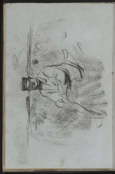 Curator: Looking at "Zittende schaapherder bij zijn kudde," or "Seated Shepherd with His Flock," a pencil and charcoal drawing made circa 1884-1887 by Willem Witsen, currently held in the Rijksmuseum. What are your initial thoughts? Editor: It feels incomplete, dreamlike almost. Like a half-remembered story fading at the edges. There’s a melancholic tenderness to the shepherd's posture, doesn’t come across heavy handed or overworked. It’s more…evocative. Curator: Exactly, Witsen situates the shepherd not simply as a figure within a landscape but also touches upon the societal and economic narratives of the late 19th century Netherlands. The work reflects a growing interest in rural life, and we can situate this drawing in discussions around labor, land use, and the romanticization of agrarian life at the dawn of industrial modernity. Editor: It's interesting how a sketch can carry so much. I love the sheep almost scribbled in, they add to that feeling of a fleeting moment, not some idealized pastoral scene. I wonder, was he happy? Did he find peace in those fields? Probably not a picnic, more like survival. Curator: Indeed, the seemingly incomplete nature, what some might perceive as just a "study," actually brings forward complex notions of labor and identity, even questions the mythologies projected onto the rural working class by urban elites, and shows a more stark or nuanced account. Editor: The detail on the shepherd compared to the almost abstract rendering of the sheep, I wonder, that difference creates a dialogue between individual and the collective, between hard realities and… dreamy expectations. It’s like a poem! Curator: I agree completely. The work exists at a fascinating intersection, touching on rural representation but it allows to investigate these historical tropes with his chosen medium, and the aesthetic sensibility of impressionism. Editor: Thinking about it, it’s really stuck with me this simple drawing is really quite thought provoking. So much conveyed through so few lines, or strokes! Curator: Yes. It is remarkable the capacity this has to resonate beyond the simplicity of the initial scene it portraits, or intended to capture.