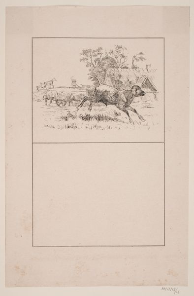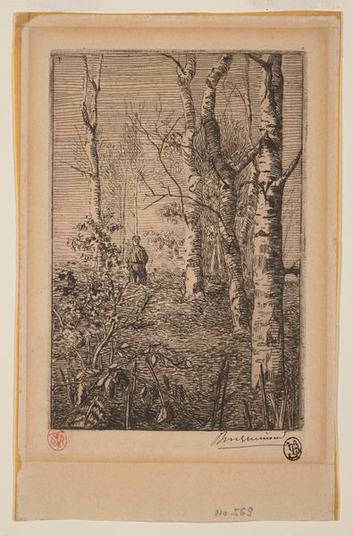 Editor: So, here we have "De Reiger," or "The Heron," by Firmin Bouisset, made sometime between 1876 and 1890. It’s an etching and print. I’m really struck by how still and contemplative it feels. What do you see in this piece? Curator: It’s interesting that you perceive stillness. This work really reflects the rise of symbolism and its complex relationship with nature at the fin de siècle. We see an attempt to elevate everyday scenes like this to a new, symbolic status. Etchings, as reproducible media, allowed wider audiences to engage with such aesthetic movements. Do you notice the poem included? Editor: I do. It seems…separate from the illustration, almost pasted on. How would the inclusion of that text have been perceived at the time? Curator: Good question. The inclusion highlights the role of text and image in disseminating cultural and moral values. Symbolism sought a synthesis of the arts - poetry, visual art, music - to evoke a unified emotional experience. So the integration would have appealed to those interested in creating this unity. It reflects a deliberate attempt to elevate the print from mere illustration to something richer and deeper, something that invites active interpretation. The heron is not just a bird; it becomes a symbol loaded with meaning, tied to the verse alongside it. Editor: I see. So, understanding this work means considering both the visual and the textual elements as intentionally intertwined? Curator: Precisely. How does that new layer influence your view? Editor: It makes me wonder what exactly that bird represents! Thank you, that definitely changed how I'll think about this artwork from now on! Curator: It’s fascinating how the historical context shapes our interpretation. Seeing the symbolism through that historical lens is crucial.