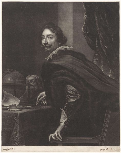 Thomas Blackmore created this portrait of an unknown man with a black cape around 1760, using graphite and black chalk. The somber hues and the subject's contemplative gaze immediately draw us into a world of introspection. Blackmore's masterful use of chiaroscuro, the strong contrast between light and dark, sculpts the figure from the shadowy background, emphasizing the texture of the cape and the delicate lace at the man's collar and cuffs. This technique not only adds depth and volume but also conveys a sense of drama and mystery, inviting us to explore the sitter’s inner life. The structural composition is carefully balanced, with the man positioned slightly off-center, creating a dynamic tension that prevents the portrait from becoming static. The pillars in the background suggest a classical influence, grounding the figure in a tradition of portraiture while also hinting at the sitter’s status and the broader cultural context in which he exists. The dark and light tones aren’t just aesthetic choices but are critical to understanding the cultural and emotional landscape Blackmore creates in this portrait.