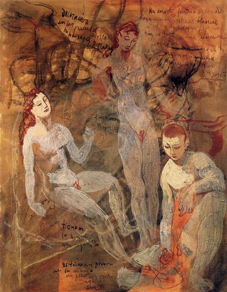 Francis Picabia's painting "Craccae" presents a layered panorama of symbols and figures, rendered with oil on canvas. The most striking motif is the disembodied eye that repeats across the canvas. This is no ordinary eye; it is the "Oculus," a symbol of divine insight. From ancient Egypt to the Renaissance, the eye has represented omniscience and protection. Think of the Eye of Horus, or the all-seeing eye in Christian iconography. Yet, here, Picabia distorts this sacred symbol, fracturing it and embedding it within a tableau of human forms. It is a deconstruction of the divine, a reflection of the fragmented modern psyche. Consider the kneeling figure, reminiscent of classical depictions of sacrifice or supplication. But his gesture is ambiguous, his gaze averted. The red lines that crisscross the composition bind these figures, hinting at unseen connections. This web of lines, like the threads of fate, suggests a world where ancient symbols are repurposed, their original meanings colliding with modern anxieties. Ultimately, "Craccae" is an exploration of how symbols persist, transform, and haunt our collective consciousness.