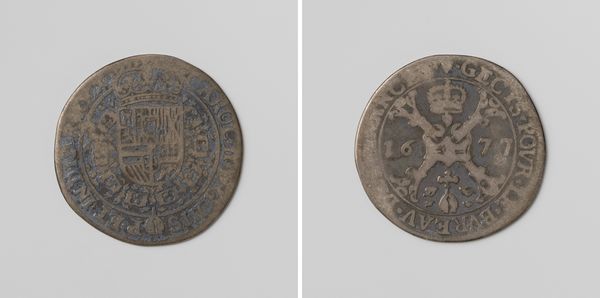 This is a silver medal of Philip IV, King of Spain, commissioned by the Council of Finance and struck in 1646. The eye is immediately drawn to the circular structure of the medal, which creates a sense of enclosure, focusing our attention on the intricate details within. The composition is divided into two distinct sides. On one side, we see a crowned coat of arms, symbolizing power and authority. The other side features a complex heraldic design with an eagle, surrounded by floral motifs, evoking a sense of natural abundance, perhaps suggesting a claim of prosperity under Philip IV's rule. The inscriptions in Latin form a complete circle around both sides, binding the imagery and text into a unified symbolic statement. The medal's design can be interpreted as a form of propaganda, using symbolic language to promote the king’s image and the council’s authority. This object, therefore, functions as a carefully constructed artifact, intended to convey specific messages about power, legitimacy, and prosperity.