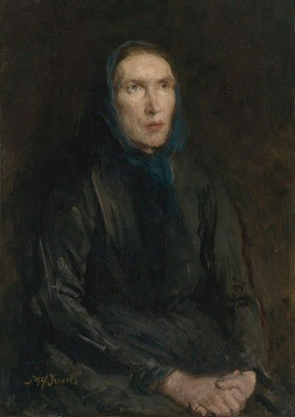 José Garnelo's "Madre" is rendered with oil on canvas, a traditional medium dating back centuries. The somber palette and loose brushwork contribute to the painting's emotional weight. Garnelo coaxes a rich range of tones from the oil paint, layering dark hues to create depth and shadow. The texture of the canvas, though mostly obscured by paint, subtly influences the play of light across the surface. His application of paint seems spontaneous, yet it's controlled. This hints at the many hours of labor and the artist's deep understanding of his medium. In Garnelo's time, oil paint was increasingly industrialized, making it more accessible to artists. However, the skill required to manipulate the material and achieve such depth of feeling remained a testament to individual craftsmanship. By focusing on the materiality and making of "Madre," we can appreciate how Garnelo elevates a traditional medium to express profound emotional depth, bridging the gap between craft and fine art.
