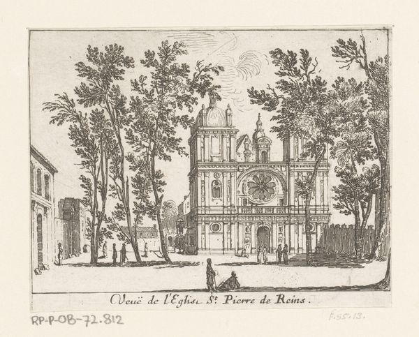 Curator: Before us we have Hendrik Spilman's "Gezicht op de Waag te Oudewater, 1745", an engraving and etching dating from approximately 1750 to 1792. It is currently held in the collection of the Rijksmuseum. Editor: It possesses a rather serene mood, doesn't it? The balanced composition, punctuated by the weight house, has an almost mathematically precise appeal. I wonder about its deeper structural intents. Curator: Indeed. Spilman's rendering captures the visual reality of Oudewater in a period where civic identity was heavily invested in symbols of commerce and communal life. The weigh house wasn’t just a building; it was the cornerstone of trade and local economy, prominently placed for all to see. Editor: Absolutely. Consider the way Spilman manipulates light and shadow. The stark contrasts not only define forms, creating volume and depth, but also direct our eye—leading us into a careful parsing of spatial relations and proportional harmonies, I see what appears to be a social theater. Curator: The presence of figures invites speculation, don't you agree? Notice the figures standing just outside the weigh house; perhaps discussing business, marking a key social gathering spot that facilitated the exchange of information alongside goods? The social infrastructure is vital. Editor: That's insightful. Let’s analyze the architecture itself, where Spilman showcases a detailed understanding of form. Observe the geometry, specifically, how vertical lines of the facade interact with horizontals across the buildings and street to produce tension; each contributing to a semiotic narrative wherein order is paramount. Curator: This kind of detailed portrayal offered viewers a tangible connection to their world, fostering a sense of civic pride. Prints such as these were distributed widely. They shaped and reinforced particular notions about places, values, and collective experiences within Dutch society at the time. Editor: Thinking about the materiality also strikes me as necessary. We are viewing an etched and engraved image. I am struck by the textural complexities achieved. These add layers to the discourse between the artist's idea and execution as an ideological operation that mirrors the socio-economic reality. Curator: Understanding the historical function illuminates the artist's choices—reflecting not just an objective landscape, but carefully constructing communal memory by choosing certain subjects of civic value like trade infrastructure, architecture, and local residents that continue influencing social perceptions of place and time. Editor: Indeed, seeing through the dual lenses—form and history—the work transcends documentation, revealing insights into 18th-century Dutch life while exemplifying fundamental aesthetic principles governing the epoch.