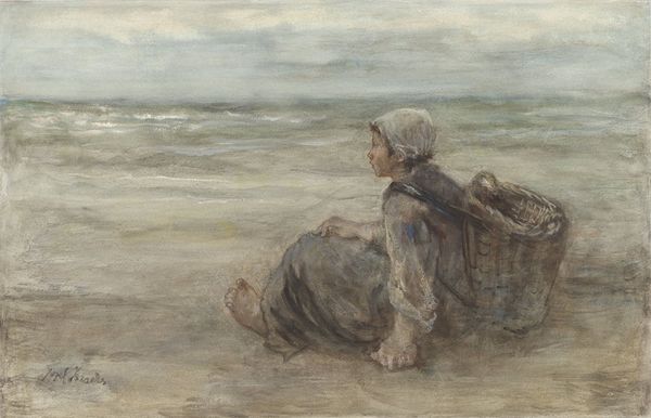 Will Hicock Low created this ink and graphite drawing called "Sonnet: When I have fears that I may cease to be," at the turn of the 20th century. The drawing is named after a sonnet by John Keats, and it encapsulates a sense of existential contemplation. Low's aesthetic was shaped by the fin-de-siècle era, a time of cultural introspection and anxiety. The figure is rendered with androgynous features, loosely draped in fabric, standing on a precipice overlooking the sea. This evokes a sense of vulnerability and exposure to the immensity of nature and the passage of time. The figure’s inward gaze suggests a deep engagement with their own mortality, reflecting the anxieties of a rapidly changing society. The use of muted tones and soft lines further heightens the introspective mood. Low uses line and shade to create a dreamlike state, inviting us to reflect on the fleeting nature of existence and the profound impact of our fears.