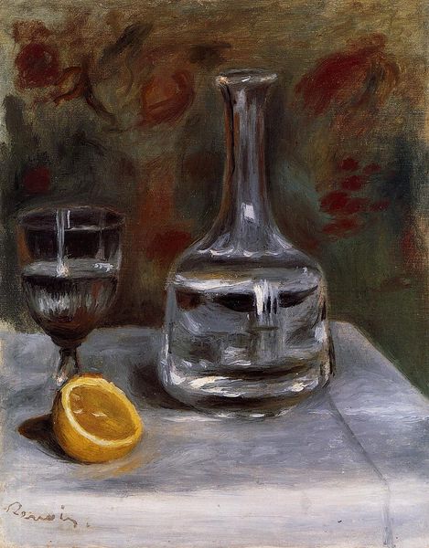 Curator: Good morning, welcome. We're looking at Van Gogh's "Still Life with Coffee Mill, Pipe Case and Jug," completed in 1884. The composition presents a cluster of mundane objects rendered in thick impasto. Editor: It's like stepping into a forgotten corner, isn't it? Moody browns and blacks...it has this intense, quiet quality. It reminds me of a Dutch interior painting—a life observed close-up and intensely. Curator: Yes, a study in contrasts and forms. Notice how the solidity of the jug plays against the angularity of the coffee mill. The brushstrokes themselves create texture and depth. It’s almost as if each object is asserting its own unique existence within the canvas. Editor: Precisely! It’s not just painting; it's tangible. I love how that stoneware jug has such volume; the coffee mill practically screams "grind me," while that pipe practically calls out "light me." Curator: Consider Van Gogh's employment of color. The restricted palette amplifies the tonal differences, bringing form to the objects, yes? Observe the way Van Gogh uses light to reveal form through highlighting objects against the dark background. Editor: True. It's a grounded palette. It’s less about beauty, I think, and more about... reality, as he perceived it. Almost humble—the coffee grinder worn, the pipe aged, but the experience it offered is fresh. It gives me a bittersweet taste of everyday life in that time. Curator: A fair reflection. The seemingly random juxtaposition presents a study in structure and function, where line, form, and hue come together in order and unity. These everyday objects, charged with personal history, reflect life experiences through material expression. Editor: You put that so well. So, standing here, considering the "Still Life"...I feel a quiet understanding, a shared breath across centuries. The painting embodies the silent stories we leave within the things we use. Curator: A compelling encapsulation. For me, "Still Life" reflects the artist's acute observational ability, using the still life genre to convey depth through color and structure.