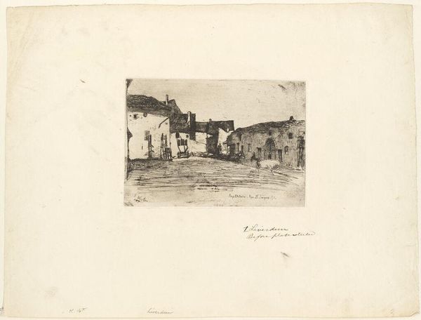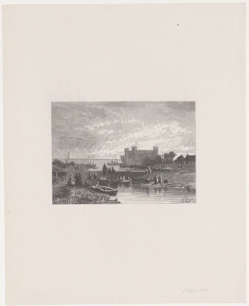 Alexander Schaepkens created this print of the Stadsmuur with rondelen bij de Brusselse Poort te Maastricht using etching. The architecture is rendered with close attention to line and texture, where the towers emerge as masses, their surfaces alive with the play of light and shadow. You will notice Schaepkens uses the etching technique to give a tactile quality to the stonework, suggesting the rough and weathered surfaces of the old fortifications. Consider how Schaepkens’ approach to composition draws on a semiotic system, where the architectural forms communicate stability and endurance. Yet, he is also playing with our perceptions. The towers loom, not as symbols of strength, but as silent witnesses to time's passage. The print invites us to contemplate how the artist destabilizes established meanings through close visual and structural analysis. It challenges the viewer to recognize the nuanced relationship between form and content, history and decay.
