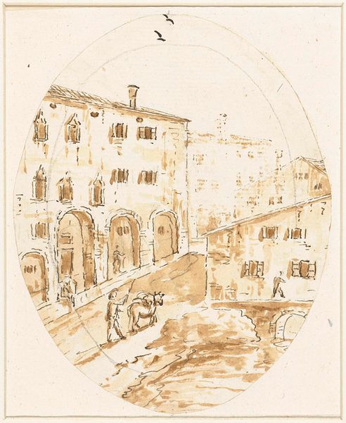 Editor: So, this is Edward Lear's watercolour, 'The Capitol, from the Forum'. It's a lovely little sketch, capturing Rome with such light and airy strokes. It feels really immediate, almost like a travel journal entry. What stands out to you? Curator: The image reflects the 19th century's fascination with antiquity. Lear, like many artists, presented Rome as both a historical site and a contemporary city. How do you think the quick sketch aesthetic affects our perception of that relationship? Editor: That's a great question! It definitely makes it feel more accessible, less like a distant, idealized past. Curator: Exactly! It's not just about historical accuracy, but also about the artist’s personal experience and how that gets communicated and then, inevitably, received by the public. Editor: I see what you mean; the accessibility of the work makes me feel that I could visit that exact location. Curator: And the work as a commodity, allows that experience to be shared and desired by others. Editor: That is so true! I never thought about how the format, or the artist's approach, could influence the social impact so profoundly. Curator: Indeed, it's about how art mediates our understanding of history and place.