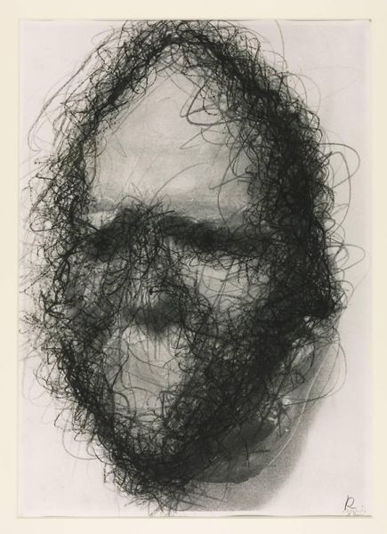 Editor: This drawing, "Os Sonetos de Shakespeare" by Jorge Martins, presents us with an enigmatic figure veiled in a cascade of lines. It's hard to make out exactly what I am seeing at first. The effect is almost hypnotic. I wonder what story it’s trying to tell. What do you see in this work? Curator: As a materialist, I am immediately drawn to the visible labor invested in this piece. The countless individual strokes, each a physical act, accumulate to form the whole. Notice how the varying pressure and density of the lines create depth and shadow. It seems to explore the tension between meticulous process and final representation. What effect do you think the limitations of ink and paper have here? Editor: That's an interesting perspective! I hadn't thought about the labor involved so much, but now that you point it out, I can see it everywhere. Do you think the constraints of the material are deliberate? Curator: Absolutely. The stark contrast of black ink on white paper creates an immediate, visceral impact. The absence of color focuses our attention on the texture and pattern created by the ink itself. The artist isn't trying to hide the process; they're showcasing it. What sort of societal messages or statements does that emphasis potentially signal? Editor: That's given me a completely new way to approach this. Looking at it again, it feels less like a portrait and more like an investigation into the properties of ink. It makes me question the separation of fine art and more “basic” crafts. Curator: Exactly. The blurring of those traditional boundaries is at the heart of a materialist reading. By foregrounding the means of production, the artist invites us to reconsider our understanding of artistic value and the social implications inherent in artmaking. Editor: It really sheds a new light. Thank you, I'll keep those ideas in mind.