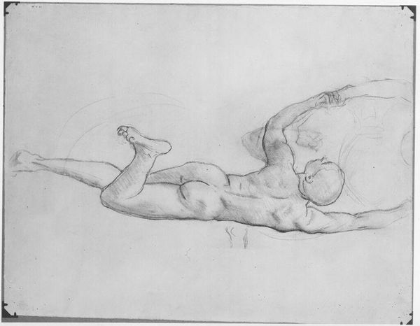 Curator: What a stark image, like a body emerging from the depths. Editor: Yes, and one very carefully constructed. We’re looking at Luc-Olivier Merson's "Study for Christ," a drawing executed in pencil and graphite. Notice the academic precision—the artist’s emphasis on anatomical accuracy. Curator: Absolutely. The visible pencil work makes me consider Merson’s artistic process. Was this study commissioned, or was he developing a specific artistic idea about how labor might influence representation, say, the physical demands experienced by a subject that, through his labor and actions, could elevate others? Editor: That's a provocative thought. To contextualize this drawing, remember that it aligns with a period of significant religious and social upheaval. We can consider the figure of Christ in intersectional terms— examining his identity as both divine and human, and thinking about how he navigated social and political systems within his own context. Curator: Indeed. Merson, within his available means of pencil and graphite, certainly created the means to develop this humanly and materially available version of Christ. He is creating something available. But it’s only a sketch—we see some areas more defined, others merely outlined. Did he seek something raw or fundamental by this choice, stripping down to core construction? Editor: Or consider that Merson made choices about how much to reveal, perhaps speaking to societal expectations around male nudity, religious figures, and appropriate artistic representation at the time. I think he balances that really well. Curator: Perhaps he worked under constraints but saw liberation in pencil and graphite, making an aesthetic choice informed by the availability of means. Did the means dictate the outcome here? Is it that these limited materials speak to a new accessibility? Editor: Thinking about artistic labor in dialogue with materials really enriches my understanding. Seeing that contrast informs so much! Thank you for bringing that perspective. Curator: And thank you for illuminating Christ’s complex relationship with cultural and historical shifts. Together, that allows for a more tangible encounter with what the artist's material, but ultimately also social, experience was in rendering such an image.