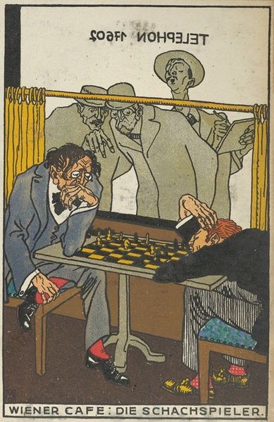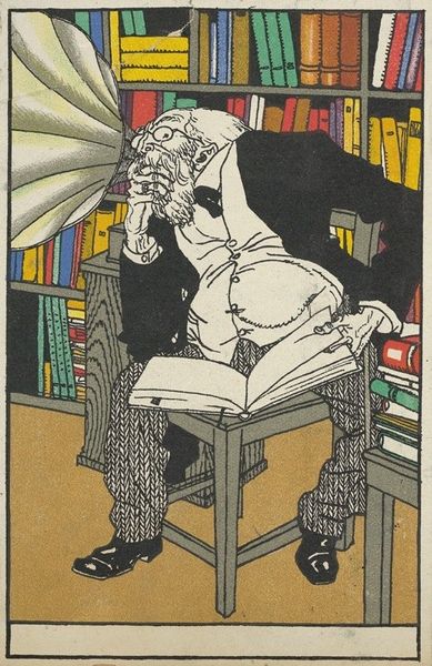 Moriz Jung made this print called On the Terrace; it’s a kind of social critique done with color and line. The color palette here is really amazing and unsettling, all browns and greens and a kind of sickly yellow. Jung is playing with some contrasts here. The guy on the left is in tatters and drinking; next to him is a man in a suit looking anxious; behind him, another guy in a suit looks straight out at us. There’s something performative in the way Jung uses the graphic medium. The color is laid down flatly, like stencils. But then he also adds these incredibly delicate and expressive lines. The lines are so much about the specifics of the people: the bare feet of the drunk, the uptight, wired face of the man in the suit. It reminds me a little of George Grosz and the New Objectivity painters, but with a folksier touch. What Jung is doing here is a kind of social commentary but it’s done with humor and a real eye for the individual. You can feel Jung's concern for humanity through the marks he makes.