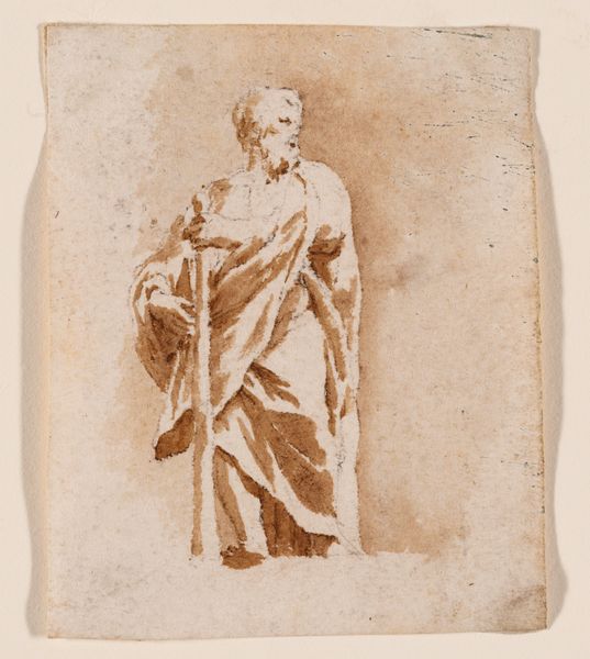 Curator: Isn't there something inherently eerie about seeing a photograph *of* a sculpture? This one is especially haunting... It's a gelatin-silver print, dating from around 1795, called "Fate Atropos" by Asmus Jakob Carstens. Editor: Eerie is spot on. There's a strange double removal happening here, a rendering of a rendering. What hits me first is the somber quality; the sepia tones amplify that stoic expression and create an overall melancholy mood. Curator: I agree! This portrayal of Atropos, one of the Greek Fates, comes across quite differently in this medium. Carstens usually worked with drawings and paintings, so the choice to capture it through photography adds another layer of complexity. Atropos, who cuts the thread of life, usually has a sense of drama around her, yet here she appears still, almost meditative. Editor: Absolutely, and the stillness has something to say about who had access to that "thread of life" as it was playing out in the artist's life and in that era. I'm thinking of how the subjugation and ownership of human life was justified and even sacralized... The way the photographic process has immortalized and elevated Atropos speaks volumes about the hierarchies Carstens inherited and consciously or unconsciously replicated. Curator: You make such a valid point; it forces me to consider the perspective Carstens brought. He was working within a Classical Realism style and no doubt intended to elevate through what we can now identify as limited aesthetics and viewpoints. It reminds us of the power we imbue within historical figures –even mythological ones like Atropos. Editor: Indeed. This work encapsulates a complex dance between art, power, and perspective. Seeing this photographic echo, we can begin to hear echoes of past narratives of control and reckon with their lasting resonances. Curator: Beautifully said. The photo manages to reveal something new despite it capturing old artistic language and mythology. Editor: Well, hopefully, it makes people think critically, too. If all art could invite self-reflection, we'd be in a much better place, don't you think?