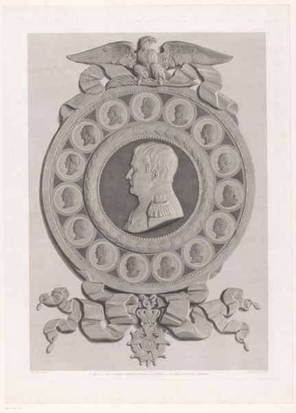 Editor: This is a 19th-century medallion, part of a set, attributed to G.L. Barberi. It's a relief sculpture, quite small, but I'm struck by its decorative style and how the figure seems both idealized and somewhat... folksy? What do you make of this portrait? Curator: It's fascinating to consider this within the context of 19th-century portraiture. The medallion form, traditionally associated with commemorating the elite, here depicts someone engaged in labor – a hunter, perhaps? We should ask ourselves what social and political narratives are at play when such imagery, traditionally reserved for the powerful, starts to depict ordinary people, or types of people. Is this democratizing? Romanticizing rural life? Editor: That’s a good point. I hadn’t considered that tension. So, the act of memorializing this figure in this format, it becomes a statement about representation? Curator: Precisely. Who gets remembered, and how, are deeply political questions. This piece likely catered to a rising middle class that found value in romantic depictions of labour. Did it serve to legitimize the status quo, or was it challenging established hierarchies? That's where art historical investigation leads us. Think about what the museum’s acquisition and display of this work says about us today, too. Editor: Wow, okay. So it's not just about who's *in* the portrait, but *why* it was made, who consumed it, and how museums then display the work. It adds layers of meaning that I completely missed! Curator: Absolutely! Art is rarely just aesthetic. It’s entangled with power, ideology, and social narratives, always shaped and reshaped by its journey through time and institutions.