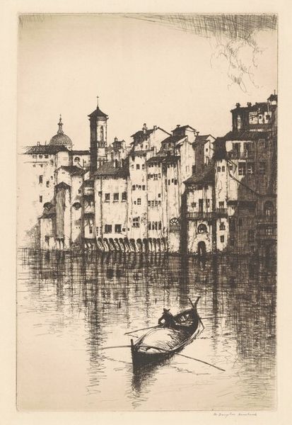 Curator: This is George Taylor Plowman's "Boat Builder's Yard, Capri", currently residing in the Harvard Art Museums. Editor: Oh, Capri! Even in monochrome, you can feel the sun baking those stone walls. It’s a cozy, almost secretive scene, isn't it? Curator: Absolutely. Boats, as symbols, often represent journeys, transitions, and the traversing of emotional or spiritual depths. Here, grounded in the yard, they suggest a pause before the next voyage. Editor: I love that. There's a stillness, a breath held. The buildings almost seem to huddle together, whispering stories to each other. Makes you wonder what tales those boats could tell. Curator: And the composition itself—the tight framing, the detail in the etching—it all speaks to a contained world, self-sufficient, almost timeless in its craft. Editor: It does feel like a memory, doesn't it? A quiet moment captured and kept. Curator: Indeed. Plowman's work invites us to contemplate the enduring relationship between craftsmanship, place, and the human spirit.