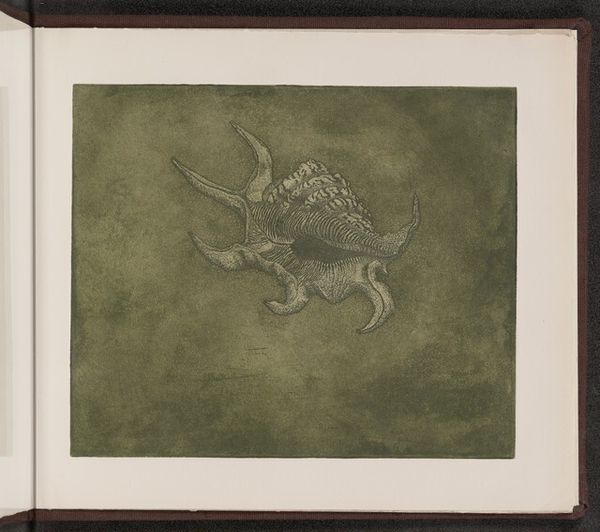 Theo van Hoytema made this lithograph, "Leguaan op een steen in water" or "Iguana on a stone in water" sometime before his death in 1917. The iguana, rendered in exquisite detail, perches on a rock surrounded by water. Van Hoytema’s choice of subject matter moves away from traditional Dutch landscape painting, reflecting changing attitudes towards the natural world at the turn of the century. During this time, many artists explored themes of natural history. The availability of printed images such as this one influenced popular perceptions of the natural world. Produced in the Netherlands, the image's style reflects the influence of the Art Nouveau movement, known for its intricate designs and natural forms. The lithograph is also relevant to the institutional history of museums, where the intersection of art and science was common. Further research might involve looking at popular science publications of the time or other scientific illustrations, to understand this image within its broader cultural context.