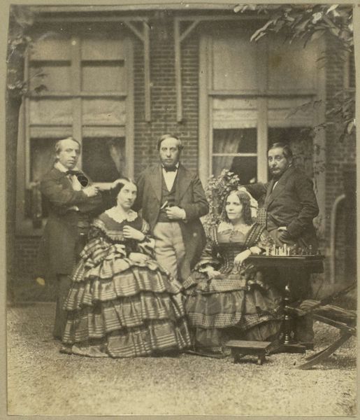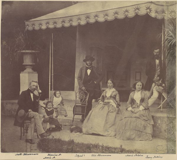 Editor: Here we have Alexander Gardner's 1865 daguerreotype, "Queen Emma of Hawaii and Her Entourage". It strikes me as very formal, almost stiff. What do you see when you look at this piece? Curator: I see a carefully constructed representation of power, mediated by the very specific technology of the daguerreotype. Think about the labor involved in creating this image, the cost of materials like silver-plated copper, and the photographer's specialized knowledge. Editor: So you’re focusing on the making of it. Curator: Exactly. The material conditions are crucial. Photography in 1865 wasn't easily accessible; it was a tool wielded by those with resources. And look at the clothing – the fabric, the tailoring, all signaling wealth and status. Even Queen Emma’s Western-style dress speaks volumes about cultural exchange, trade, and, inevitably, power dynamics. Editor: It's interesting how you connect the material aspects to larger social themes. It makes me think about who controlled the means of representation. Curator: Precisely! This image isn’t just a portrait; it's a document shaped by specific social and economic forces. Who is deciding how history will remember them and for what means? The means matter! How might this scene have been different with more contemporary photographic technology? Editor: I hadn't considered the economic side of art creation so directly, before. That definitely shifted my view. Curator: Paying attention to materials and production methods can reveal a lot about the power structures at play. That awareness enriches our experience, I think.