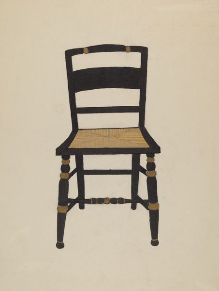 Editor: Here we have a work titled "Chair," created around 1937 by John Sullivan. It seems to be rendered in charcoal and pencil. I'm struck by its quietness. It’s just… a chair. But meticulously drawn. What do you see in this piece? Curator: Well, the subject matter immediately makes me consider the social context. This chair, depicted during the late 1930s, speaks to the everyday object elevated to art. But it’s not just any chair, is it? This style suggests a harkening back to earlier American craftsmanship, perhaps a response to mass production and the machine age. Does that resonate with you? Editor: Yes, it does. I guess I hadn’t considered it as a commentary. So, you're saying the act of drawing it so carefully might be a statement about valuing handmade objects? Curator: Precisely. And consider the role of the artist, documenting a form of labor – the creation of furniture – that was possibly already fading. This representation, through drawing, serves almost as a historical record. Think about who might have commissioned or consumed such an image during the Depression era. Was it a celebration of Americana? Editor: That's fascinating. It shifts the meaning entirely. I was seeing just a simple drawing of a chair, but now I see it as this loaded cultural object. I suppose it is hard to remove art from social issues of that time. Curator: Exactly. And that's the power of looking at art through a historical lens. We uncover those embedded narratives. What do you make of its stark presentation, alone on the page? Editor: That probably reinforces that message. Makes us focus on the object itself, removed from any distractions or a real interior. Well, I’ll certainly never look at a drawing of a chair the same way again. Curator: Hopefully. This gives a fresh perspective to simple subjects we tend to oversee daily.