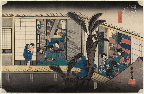 This woodblock print called "No. Akasaka" was made by Utagawa Hiroshige, sometime in the mid-19th century. In this image, Hiroshige depicts a bustling scene from the Akasaka post station in Japan. This print comes from a series illustrating the fifty-three stations along the Tokaido Road, a major route connecting Edo, modern Tokyo, with Kyoto, the imperial capital. These prints weren't just landscapes; they were windows into Japanese society, and the rise of a merchant class with the money and leisure to travel. We see travelers on foot, laborers carrying goods, and people resting at tea houses. Each detail tells a story about the social hierarchy and daily life of the time. Hiroshige’s work reflects the culture of its time. Woodblock prints like this one democratized art, making it accessible to a wider audience. Art historians use a range of resources, from travel guides to social histories, to better understand the context of art like this. Studying such works gives us a richer understanding of the intersection of art and social life in 19th-century Japan.
