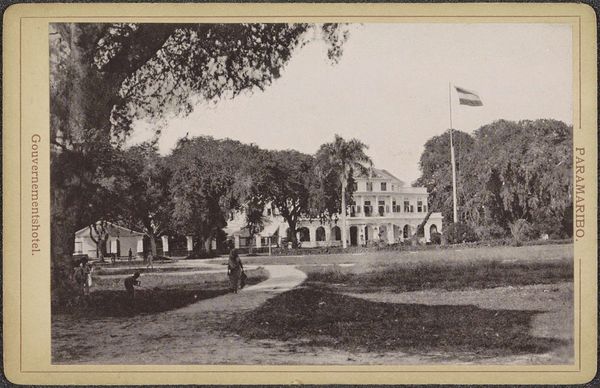 Editor: Here we have a gelatin-silver print from between 1925 and 1930 by Isken: *Fabrieksgebouw met de ingang van het laboratorium van suikerfabriek Meritjan te Kediri op Java*, or, *Factory with the entrance to the laboratory of the Meritjan sugar factory in Kediri, Java*. There's a stark kind of beauty in this industrial landscape. What jumps out at you? Curator: It speaks of ghosts, doesn't it? Shadows and whispers caught in silver. I see a carefully constructed facade – almost neoclassical in its bearing - trying to civilize the industrial beast within. Did you notice the playful dance of the trees framing this rigid architecture? Almost as if nature is conspiring to soften the edges of progress. Editor: I hadn’t really considered the contrast, but now that you mention it, it's pretty obvious. Do you think that the trees and landscape could suggest any particular agenda of the artist? Curator: Perhaps Isken sought a visual reconciliation, a dialogue between man and nature at a time when industry was aggressively reshaping the world. Java, in that period, was undergoing intense transformations, grappling with the fruits—and costs—of modernization under Dutch colonialism. Makes you wonder, doesn’t it, what was actually being ‘processed’ at the Meritjan sugar factory: sugar cane or colonial ambition? Editor: That gives the image an interesting edge that I wasn’t seeing before. So it's less about the architectural details and more about these broader questions that it hints at? Curator: Exactly! Art often invites us to wander beyond the literal. These historical photos can act like time capsules, no? Filled with unanswered questions, and layered perspectives just waiting to be rediscovered. Editor: Thanks, that was such an illuminating take on it. Curator: My pleasure. Always a joy to dust off the echoes of history.