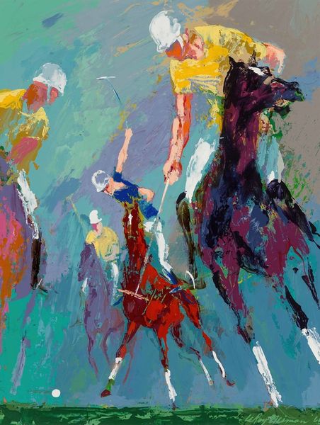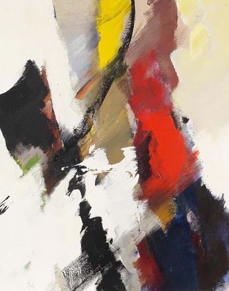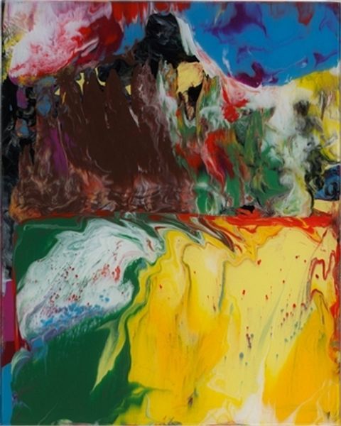 Curator: Before us hangs a work by Willem de Kooning, an acrylic on canvas known simply as “Untitled,” created in 1976. Editor: It hits me with an immediate sense of unease. The heavy impasto layers clash, the black forms loom...it's turbulent. Curator: Precisely. Note the artist's energetic application of paint; his gestural strokes convey an immediacy and rawness characteristic of abstract expressionism. There is an apparent lack of focal point; our gaze drifts across the canvas, guided by the compositional interplay of colors and forms. Editor: And the colors...the acid yellows and greens fight against the dense black masses, suggesting a struggle, maybe internal? I keep getting drawn to what looks almost like blood red at the bottom, partially obscured but visually insistent. Is it about repression, maybe something primal boiling beneath the surface? Curator: The ambiguity is intentional, I believe. The composition's success relies not on recognizable subject matter but on its dynamic tension. The formal elements combine to create visual interest, forcing the eye to travel, analyze, and find a momentary equilibrium before being thrust into another visual event. Editor: So the symbol, if any exists, isn't located in an object, but is the emotional interplay itself. Is this how we experience internal conflicts? It's almost a visual language for the unspoken. Curator: Indeed. Through deconstruction of form and representation, the painting functions as a phenomenological experience in and of itself. The viewer isn't passively observing; they're actively participating in the construction of meaning through visual analysis. Editor: De Kooning forces us to confront feelings rather than depictions, and that boldness of expression is still provocative even today. It mirrors our own complexities. Curator: I concur; the painting remains effective, almost a half-century later, due to its relentless self-referentiality, focusing entirely on the dynamic arrangement of visual components. Editor: Ultimately, de Kooning delivers an open question about feeling. We supply our answers based on the symbolism we recognize within ourselves.