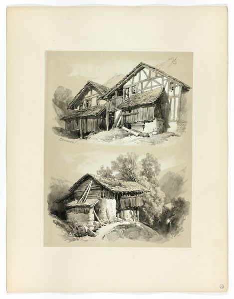 James Duffield Harding created this lithograph entitled “Port of Clwyd and South Brent, Devon, from Picturesque Selections” sometime in the 19th century. The print presents a diptych of rural dwellings, rendered with meticulous detail. The stone and thatch of the buildings are captured through a dense network of lines and shading. The composition is divided horizontally, creating a comparative study in architectural form and texture. The upper scene shows a person sitting outside a stone building; the lower, a cluster of cottages. Harding’s strategic use of light and shadow accentuates the tactile quality of the materials. The linear precision, balanced with tonal variation, offers a vision of the picturesque—the irregular, asymmetrical qualities found in nature. Harding’s work here reflects the 19th-century interest in empiricism, in observing and documenting the world around them. The cottages are not simply buildings, but subjects of detailed scrutiny and artistic interpretation. The lithograph invites us to consider how Harding’s vision mediates our understanding of place and the poetics of rural life.