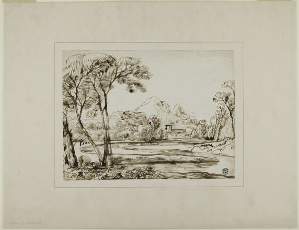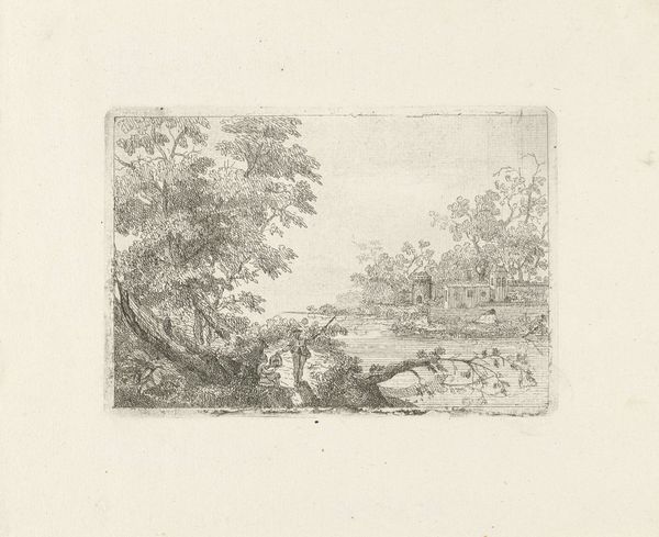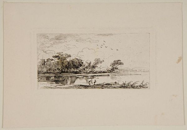 Landscape with River, Distant Hills, and Figures Fishing in Foreground n.d.