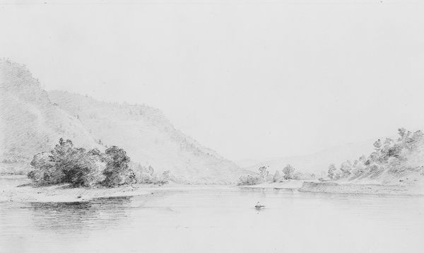 Lefevre James Cranstone rendered "The Ohio River near Wheeling, West Virginia" in graphite and gray wash. The composition, dominated by horizontal lines of the river and land, evokes a sense of tranquility. Cranstone manipulates tone to create depth, with darker washes defining the distant hills and contrasting against the lighter, open sky. This strategic use of light and shadow not only models the landscape but also guides the viewer's eye, inviting us to contemplate the relationship between nature and the nascent industrial presence marked by the steamboat. The river, serving as both a compositional and conceptual artery, destabilizes traditional landscape painting. Rather than portraying a purely bucolic scene, Cranstone integrates the signs of human activity, thus creating a tableau that captures a moment of transition. The artist uses a visual semiotic system to represent cultural codes of expansion and progress.