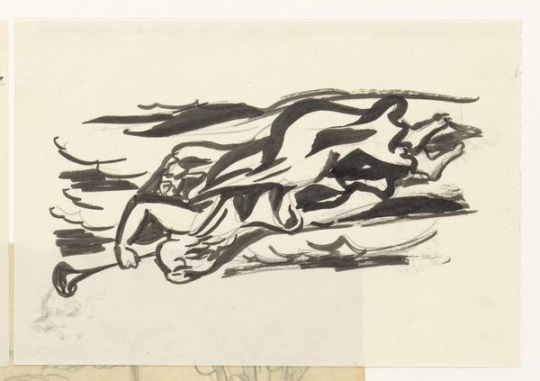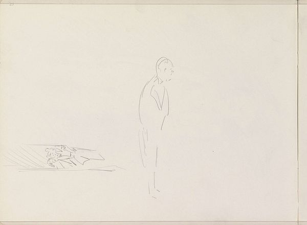 Editor: Here we have Aat Verhoog's "Yasha," created in 1975. It’s an etching, predominantly black and white, showing a woman seated on a bench and a dog. The first thing that strikes me is the laboriousness implied in its creation. What are your thoughts when you consider this piece? Curator: Immediately, I think about the process itself. An etching demands time, pressure, a deliberate engagement with the material – the metal plate, the acid, the paper. It challenges the notion of art as instant inspiration and forces us to confront the artist’s labor. It’s not just about representing "Yasha," it's about the means by which that representation comes into being. What is suggested through the materiality of the mark? Editor: That's interesting. It highlights the value the artist puts on technique and process, making it seem less like a simple portrait. It appears Verhoog embraced traditional methods. Was printmaking having a moment during that time, to express certain subjects? Curator: Yes, and thinking of printmaking as a reproductive technology - making multiples, accessible art - we might see this within a wider context of challenging art's exclusivity and preciousness. What do you make of the difference between the solid white silhouettes and the areas of dense hatched lines? Editor: The contrast emphasizes the human and the animal as figures against a worked-over ground. It highlights how those foreground figures become objects of visual labor. Did Verhoog usually adopt this contrast in the context of other printmakers engaging figuration in this era? Curator: Examining the print alongside the broader socio-political and artistic moment emphasizes this choice. What appeared a fairly standard portrait becomes an artistic statement when read from a materialist view. Editor: Absolutely, thinking about the labor involved really transforms how I see this piece! Thanks! Curator: And it makes one consider labor practices and accessibility.