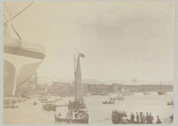 This albumen print shows the harbor of Singapore, and was produced by the photographic firm G.R. Lambert & Co. Photographs like this were produced in multiples, using relatively simple equipment, and were sold as travel souvenirs. In this case, the tonal range is limited, which speaks to the technical constraints of photography at the time. But if you look closely, you see a complex social situation unfolding. The image juxtaposes traditional rowboats with modern steamships, indicative of Singapore’s role as a crucial trading port. While the steamships represent industrial progress and global trade, the rowboats suggest the local labor force that supported the bustling harbor. The many hands that built the boats, loaded cargo, and navigated these waters, were essential to the port's economy. By understanding the materials, processes, and context of this photograph, we can understand the relationship between labor, trade, and technological advancement that shaped Singapore's identity.