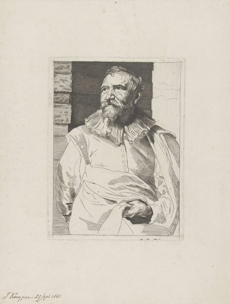Joseph Maes made this reproduction of an engraving of a portrait of Adam van Noort. Van Noort lived in Antwerp in the 16th and 17th century. Prints like this circulated widely and were important for establishing an artist's reputation, and for disseminating styles and techniques. Looking at this print, we might ask, what is the politics of imagery in Antwerp at this time? In the 17th century, Antwerp was part of the Spanish Netherlands and a major center for art production. Portraits were important status symbols for the bourgeoisie, but also a means of establishing the cultural dominance of the elite. We can research the history of Antwerp academies and workshops to learn more about how artists gained status and what purposes art was made to serve. Prints like this help us understand how artistic fame is constructed through institutions like art markets and academies. The historian looks into those institutions. The meaning of art always depends on its social and institutional context.