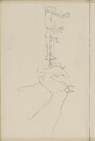 Cornelis Vreedenburgh created this drawing, "Toppen van daken en een toren" with graphite. The composition of the artwork is minimal, with the tower and rooftops rendered as a series of sharp, angular lines against a pale background. There's a sense of incompleteness, as though the artist is not trying to capture the full reality, but rather the essence or structure of the architectural forms. The choice of graphite is key, its monochromatic nature strips away any distraction, pushing us to focus on the form and structure of the tower. The negative space is as important as the lines themselves, giving the tower room to breathe, to assert its presence without overwhelming the scene. We might see the tower not just as a physical structure but as a sign of something greater – perhaps stability, aspiration, or the passage of time. The drawing invites us to look beyond the literal and to consider how simple lines can convey complex ideas about space, form and representation.