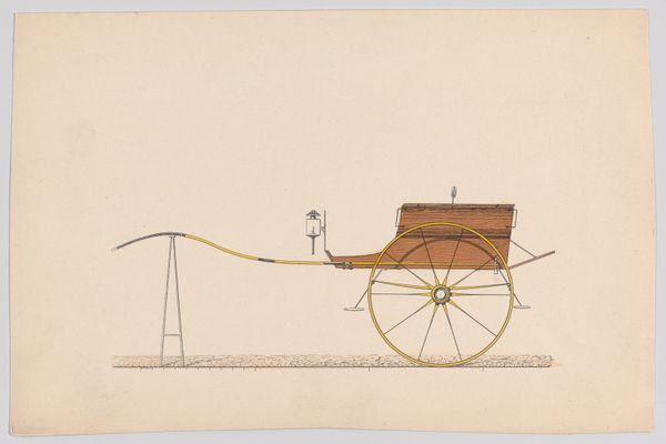 Editor: So this drawing, "Design for Vis-a-Vis Carriage," dates to somewhere between 1865 and 1875. It's pen, engraving, and possibly other drawing media on paper, currently held at the Met. I’m struck by the clean lines and the symmetry of the carriage; it feels very precise and elegant. What do you see in this piece? Curator: Beyond the aesthetic appeal, this carriage design evokes powerful societal symbols. Consider the vis-à-vis seating arrangement, literally "face-to-face" – who was afforded such intimacy and conversation? What social rituals are encoded in the very structure? Editor: That's a great point; it prompts me to consider the social dynamics within the carriage itself. Was it primarily for courtship, business negotiations, or simply family outings? Curator: Exactly! And note the artist's focus. It's not just transportation; it's a stage for performing social roles. This carriage is a vessel of status, revealing a society obsessed with outward appearances and prescribed interactions. Can you see how even the design emphasizes these ideas? Editor: Now that you mention it, the very deliberate detailing in the seating versus the simplification of the wheels gives greater significance to those seated. The focus isn't about moving, but about being seen. Curator: Precisely. Each curve, each line, carefully conveys an understanding of both form and the societal messages contained within that form. Editor: This has certainly changed my perspective. I initially saw only a beautiful design, but now I recognize the carriage as a powerful symbol of social standing and interaction. Curator: And understanding these layers unlocks the artwork's true resonance through cultural memory.