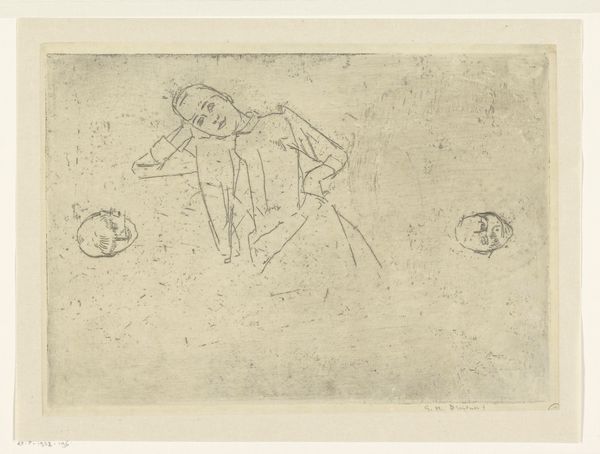 Editor: This sketch, "Drinking (_) person", done in chalk and pencil, probably dates back to the 19th century. I'm really struck by how raw it feels. The lines are so immediate and unrefined. What do you see in this piece, considering the artistic processes involved? Curator: Immediately, I consider the availability of materials to the artist and how that shaped the outcome. Cheap, readily accessible materials like chalk and pencil suggest a focus on process over a precious finished object. Was this piece preparatory? A casual observation? The type of paper used—its size and quality—would offer clues to the artist's intention and economic circumstances. Editor: That’s fascinating. So, even the paper tells a story about the artist's world? Curator: Precisely! Think about the social context. Was this created in a formal academic setting or on the streets? Pencil sketches, especially those focusing on everyday subjects like this 'drinking person', often served as a direct means of capturing slices of life, accessible and relatively inexpensive for the artist to produce and, perhaps, for a growing middle class to consume. How does the portrayal of someone simply drinking influence our reading of the social landscape? Editor: So, you’re saying it challenges the traditional view of art being only for the wealthy, since its subject matter isn’t as high-brow or idealized? Curator: Exactly. And consider the 'means of production', to use a term. This kind of rapid sketch bypasses the need for elaborate studios and assistants. The artist directly engages with the subject. This democratizes art making, blurring the lines between fine art and craft. The labor involved is direct, immediate. What implications do you see? Editor: I never thought about a simple sketch as a reflection of material conditions. Curator: We can read art by looking at the economic factors informing its production. Analyzing material constraints enhances our understanding of art’s relationship with society, labor, and cultural values. Editor: This changes everything about how I'll look at sketches from now on. Thanks!