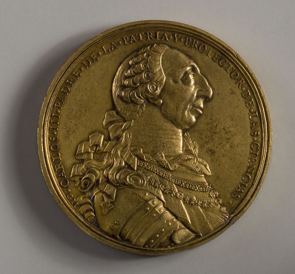 This is Benedetto Pistrucci's ‘Coronation of Queen Victoria,’ a gold medal now held at the Metropolitan Museum of Art. At first glance, the medal’s circular form, uniformly golden hue, and smooth texture evoke a sense of classical harmony and timelessness. Queen Victoria’s profile, meticulously rendered, occupies the central space, surrounded by inscribed text. The design echoes ancient Roman coinage, yet it operates within a specific cultural discourse. Pistrucci's careful articulation of Victoria's features, framed by the clean, geometric arc of the lettering, reflects a tension between individuality and authority. The use of gold, of course, is not incidental, and is a potent signifier of wealth, power, and legitimacy. The work challenges conventional notions of portraiture, prompting us to question how the formal elements of representation can shape perceptions of power and identity. Consider how the medal's design invites us to reflect on the interplay between aesthetic form and cultural meaning, revealing how power is not just held but meticulously crafted.