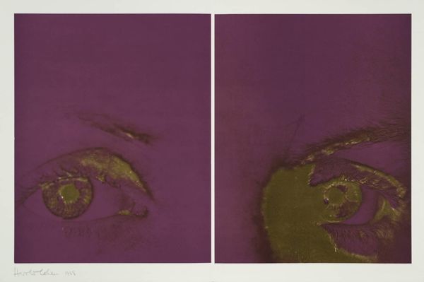 Curator: John Piper, the British artist who lived from 1903 to 1992, is the creator of this intriguing print, titled "Eye and Camera: Yellow and Green", housed here at the Tate. What are your initial thoughts? Editor: It feels like a fragmented dreamscape, these floating ovals of color containing suggestive but ultimately elusive forms. The contrast between the dark masses in the top oval and the lighter colors below creates a curious tension. Curator: The title itself seems to point to a multifaceted perspective, blending human vision with the mechanical lens. I wonder if this reflects a broader societal shift in how we perceive reality, mediated by technology. Editor: The arrangement in stacked ovals – almost like lenses themselves – evokes layers of meaning. I keep returning to the darker shapes; they hint at something primal, perhaps even a sense of unease. Are those figures? Curator: Piper was deeply engaged with British identity, especially its landscapes and architectural heritage during wartime. It's possible these swirling forms represent a kind of visceral reaction to the devastation of war. Editor: War certainly does leave its mark, doesn't it? Curator: Indeed. Looking closely, I think the yellow, green, and black represent a synthesis of emotions during that specific time. Editor: A potent mixture to contemplate. I'm glad to have noticed that. Curator: As am I. It makes you think how much of that is happening everywhere.
