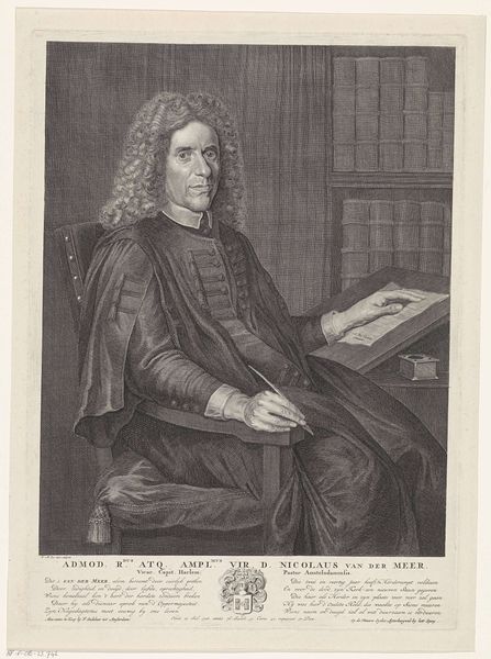 Editor: So here we have "Portret van Gillis Valckenier op 50-jarige leeftijd", from 1674, by Theodor Matham. It’s an engraving, and something about the detail and formality really jumps out at me. What do you see in this print? Curator: As a materialist, I see this engraving not just as a portrait, but as a document of production. Look at the paper itself, where it likely comes from, the social structure involved in producing it at that time, and the incredible labor demanded by this print-making process. The very act of producing multiple impressions of Valckenier shifts our focus from him as an individual to him as a product. Editor: So it’s more about the act of making, and what that implies about the subject's status, than about Valckenier himself? Curator: Precisely. Consider the materials – the copper plate, the inks. These were precious resources, controlled by specific groups. Engraving demands immense skill, serving an apprenticeship of years perhaps, tying Matham, and artists like him, to a network of masters, journeymen, and apprentices. This print speaks volumes about the Dutch Golden Age's economic structures and systems of artistic production. Editor: So even something that seems so straightforward as a portrait is deeply embedded in material realities. I hadn’t really thought about the implications of printmaking itself. Curator: What does it mean to disseminate an image of someone so widely, creating, in essence, a kind of early form of publicity dependent on technological advancement? And how does that effect consumer culture now, when such dissemination is often instant, rather than the physical creation of the ‘print’ of our world now, from selfies to celebrity shots. Editor: That really makes you reconsider how images are created, viewed, and consumed even today. Curator: Yes, thinking about the tangible effort reveals much that’s now invisible to us when creating digital content.