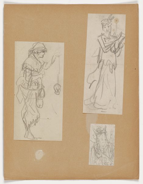This sheet of studies, simply titled ‘Caps,’ features three meticulously rendered bonnets in pencil and watercolor by an anonymous artist. It’s interesting to think about how we use drawing to work things out, to plan and prepare. Each bonnet is like a little world of texture, from the frills and lace to the bows that sit jauntily atop. The palette is so restrained, almost ghostly, yet it gives us so much information. Look closely at the bottom bonnet. Notice how the artist uses delicate, parallel lines to create the illusion of fabric and shadow. It’s not just about representation; it’s about the sheer pleasure of mark-making. This piece reminds me of the fashion sketches of Erte, who turned clothing into almost architectural forms, or maybe the botanical studies of someone like Maria Merian, who combined scientific observation with artistic flair. Here, though, we have no definitive answers, just the beauty of line and form. Isn't art wonderful?