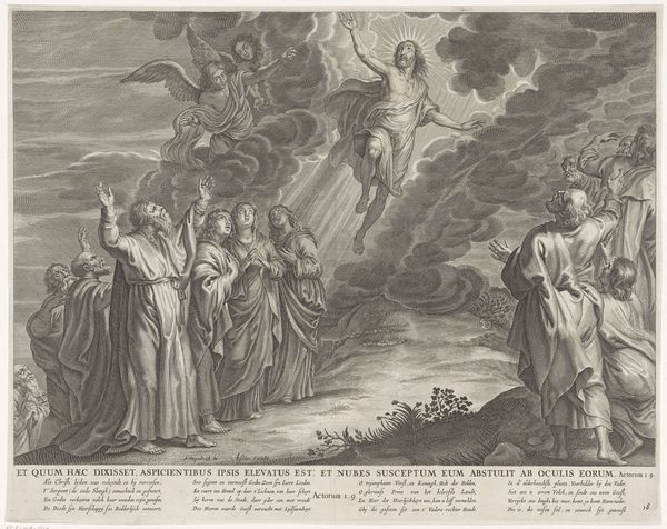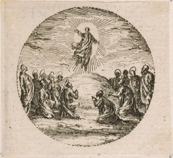 Editor: This is "The Death of the Virgin" by Conte Carlo Lasinio, housed here at Harvard. The etching is incredibly detailed. What stands out to you about this image? Curator: Well, consider the labor involved in producing such a detailed print. The engraver’s skill, the paper's sourcing, the socio-economic conditions that allowed for this kind of production – it all points to a complex system of artistic creation and consumption. How does it fit into the larger print market of the time? Editor: That's a great question! I hadn't considered the print market. It's more than just a religious scene; it's a commodity. Thank you!