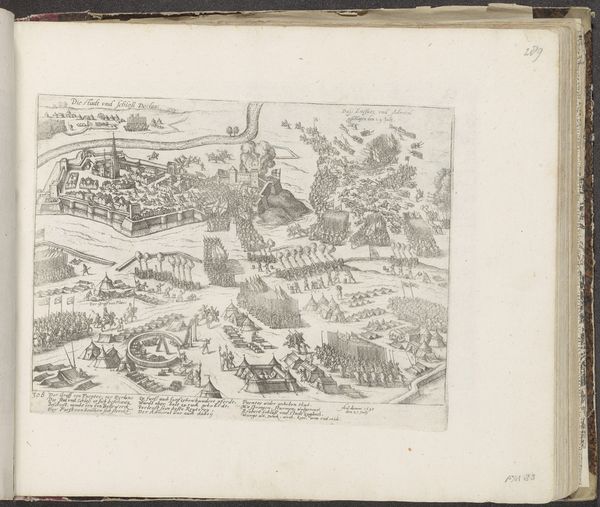 Frans Hogenberg created this print depicting the Slag bij Dreux in 1562. It offers a bird's-eye view of a pivotal battle during the French Wars of Religion. Hogenberg, working in the Netherlands, captures the chaos and scale of the conflict. Consider the cultural context: the 16th century was a time of intense religious and political upheaval, with the rise of Protestantism challenging the Catholic establishment. France was deeply divided, and battles like Dreux were bloody episodes in a larger struggle for power and religious freedom. Prints like this served as a form of early news media. They visually communicated events to a wide audience. The artist’s choices, what to include and how to depict it, could shape public opinion and reinforce particular narratives about the war. To understand this print better, we can look at contemporary accounts of the battle. These accounts can help us unpack the biases and perspectives embedded within this seemingly objective depiction of war. The history of art is always contingent on the social and institutional contexts in which it’s created and consumed.