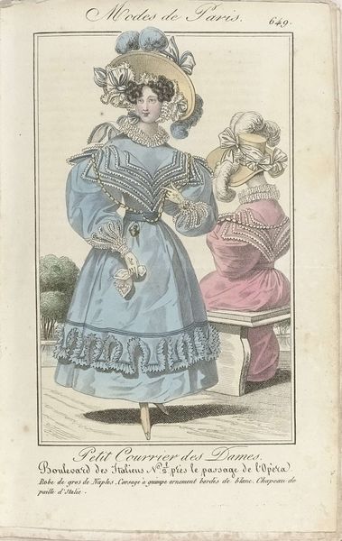 Curator: Here we have Laurent Guyot's "La Mde. d'Huitres" from 1786, currently held in the Rijksmuseum. It's rendered with watercolor and printmaking techniques. What strikes you initially? Editor: It feels surprisingly light and airy. The washes of color give it an almost ephemeral quality. The subject, a woman with a basket of oysters, seems to exist in a world of gentle tones and textures. Curator: The materiality supports that interpretation, wouldn't you say? The gentle strokes and translucent nature of the watercolor emphasize delicacy and contribute to a sense of refined observation. Guyot uses color to build form without demanding hard outlines. Editor: Absolutely. Oysters are traditionally associated with Aphrodite and sensual appetites. Seeing them here, in this rather domestic scene, it presents a compelling interplay between earthly work and underlying desire. What I love is how the text at the bottom even talks about how oysters need to "refresh." Curator: Yes, and the basket takes on an interesting weight when understood as a visual container for that deeper symbolic complex. Note how the geometric structuring contributes to its sense of formal rigor, grounding it against the organic forms within. Editor: Indeed, it reminds me of how genre painting—and prints like this one—were vehicles to talk about the cultural and social happenings of the era. It becomes a signifier of status and the rise of the middle class. I wonder what type of symbolic oyster meanings people in the 18th century may have recognized versus those we bring today. Curator: Food has consistently played important semiotic and material roles across social and cultural arenas. The treatment of line, moreover, serves to create a hierarchy, emphasizing certain figures over others to support Guyot's centralizing vision. Editor: And even today oysters maintain some association with specialness. They feel connected with luxurious nights, a delicacy shared in an intimate encounter, for example. Thinking about the artwork now, my mind leaps to future archeologists analyzing contemporary oyster depictions and divining similar connections. Curator: Ultimately, this piece balances the aesthetic refinement of its time with these echoes of much older traditions and evolving connotations. Editor: It's remarkable to witness how different eras overlay upon each other and that one seemingly simple image.