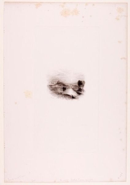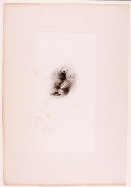 Curator: The subject of our focus is Edward Goodall's "The Last Man," currently residing in the Harvard Art Museums. Editor: My initial impression is of intense solitude. The stark white space surrounding the central image creates a feeling of immense emptiness. Curator: Yes, the figure seems quite isolated. The subject of the last man on earth resonates with potent cultural anxieties, exploring themes of survival and the end of civilization. Editor: It's striking how the artist chose to depict the scene. The monochromatic palette and hazy details emphasize the bleakness. What materials did Goodall employ to create this effect? Curator: I think the key here lies in how this composition speaks to universal fears and hopes, reflecting the resilience of the human spirit even when faced with extinction. Editor: True, and the choice of humble materials serves to amplify the feeling of loss, reminding us that even the grandest narratives ultimately depend on simple resources and labor. Curator: It's a poignant reminder of our place in the world. Editor: Indeed, a bleak outlook, but valuable insight into our relationship with our world, and our own mortality.