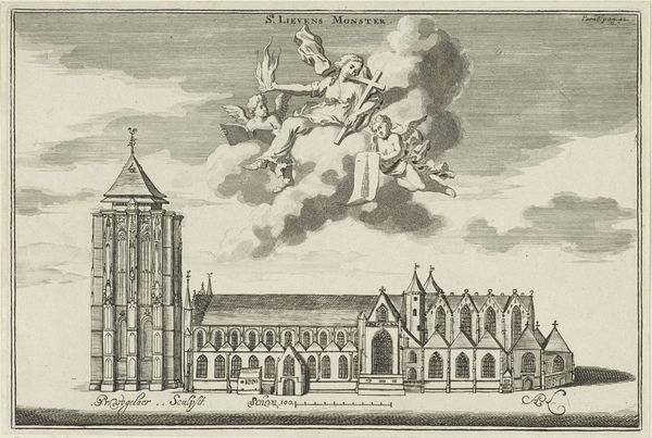 Hendrik Udemans created this print of the town hall of Middelburg during the Dutch Golden Age, a period defined by the rise of Dutch maritime power, trade, and cultural flourishing. The image presents a scene bustling with commercial activity. Carriages and figures fill the foreground, suggesting the town hall was not just a center of governance but a vital social and economic space. Two cherubic figures hover above the hall, bearing symbols of Middelburg. Consider the historical context: Middelburg was a key hub in the Dutch West India Company, deeply entangled with the transatlantic slave trade. This reality casts a shadow, prompting us to reflect on whose prosperity is depicted here and at what cost? The grandeur of the town hall becomes a symbol of a complex and often brutal history, urging us to consider the full implications of this moment in time.