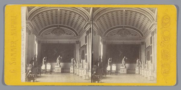 Curator: What we have here is a photograph titled "Beeldengalerij in de Vaticaanse Musea," taken circa 1860-1880 by Giorgio Sommer. It depicts a sculpture gallery within the Vatican Museums. Editor: Immediately, I'm struck by the almost clinical atmosphere. The statues, the stark lighting, the repeated forms… it's like a factory assembly line, but for idealized human figures rendered in stone. Curator: Indeed. This photograph captures the late 19th-century obsession with the classical world and its artifacts. Sommer was quite prolific in documenting cultural heritage sites for a burgeoning tourist market. This photograph helped fuel the era’s widespread Neoclassicism movement. Editor: Precisely. Look at the framing, the careful staging, the way the statues are elevated on uniform pedestals. It transforms craftsmanship and the handling of materials into a controlled display, almost erasing the labor involved in extracting the stone and the meticulous sculpting required to give them form. Curator: The photograph also speaks to the power dynamics inherent in museum display. The Vatican Museums, repositories of vast wealth and artistic power, present these works within a specific narrative, a constructed lineage of Western art and civilization, with the church at the center of it. Editor: Absolutely, and notice the subtle gradations of light. The photographer uses light and shadow not just to model form, but to direct the eye, reinforcing a certain reading of these sculptures, turning ancient art into symbols of modern European power and control. It highlights how the act of display impacts meaning as much as any carving. Curator: And consider the implied viewer. Someone buying this photograph would, in many ways, gain the privilege of curating and owning an accessible copy of the great artworks, therefore enacting a new layer of ownership, so to speak. Editor: It’s funny how a still photograph, a single image, can point to a complex world of creation, labor, materials, and ultimately, the cultural authority vested in these objects through museums. Curator: Exactly. And it gives one pause when contemplating the relationship between photography and sculpture. Sommer essentially produced a mass-produced object OF objects presented in a gallery setting, prompting reflections on authorship and circulation in the age of mechanical reproduction. Editor: It definitely makes you question the relationship between the artifact and its commodification as a tourist image. The labor isn't just in making the sculptures, but in making them reproducible and accessible as signs of cultural capital.