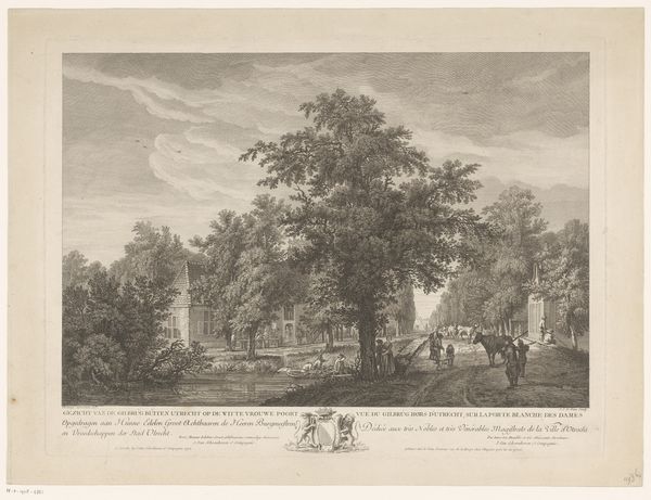 Curator: Let’s talk about John (I) Pye's "Landschap met kudde en herders bij een doorwaadbare plaats", an engraving from around 1775. Editor: Wow, that's quite a mouthful! "Landscape with Cattle and Shepherds by a Fordable Place"... The composition is quite striking, very picturesque. The details with people and animals together are incredible! How should we approach something that wants to appear as both history-painting and plein-air? Curator: The clue is perhaps right there! Consider the historical moment. Think about how ideas of the pastoral were being reshaped in response to growing urbanization. In a world increasingly defined by industry, images like these offered a vision of a harmonious past. But it's also a political statement. Who does this 'harmony' serve? Is it for everyone, or only a select few? Editor: So, you’re saying the image of tranquility is not as straightforward as it seems. But does this link to neoclassical values that were emerging then? I see elements of that. Curator: Exactly. Look at the composition, the idealized forms of the figures, even the ruins in the background evoke a sense of a classical past that's being invoked to lend authority to the present. Engravings played a key role here by making images accessible. These were commodities that shaped how the British saw themselves and their place in the world. It becomes less about art and more about a manufactured longing for simpler times! Editor: I hadn’t thought of the distribution aspect and political use of this kind of images. I guess it highlights the importance of looking at these works critically, not just aesthetically. It is way more nuanced than just beautiful landscapes. Curator: Precisely. The art world does not exist in a vacuum. Understanding these social, cultural, and economic layers provides a far richer reading of art history. Editor: I’ll definitely keep that in mind. Thanks, this has been incredibly insightful.