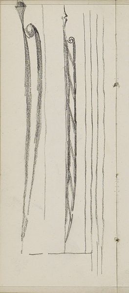 Editor: This drawing, titled "Ontwerp voor een lepel," or "Design for a Spoon," was created by Henri Cameré sometime between 1864 and 1894, using pencil. I’m struck by its simplicity. It feels almost like a technical illustration, but the delicate details hint at a more artistic intention. What elements of its form stand out to you? Curator: Notice how Cameré employs the medium of pencil to investigate the interplay of light and shadow across the spoon's surface. Observe the ovoid form of the bowl, the parallel lines of the stem, and the carefully delineated ornament at its base. These elements are not merely representational; they embody a concern with proportion and balance. Editor: I see what you mean about proportion and balance. It is meticulously rendered. But beyond the surface, does the spoon as a form suggest anything further? Curator: Consider the interplay between line and volume, the way the artist models the spoon's concavity with subtle gradations of tone. It is a study in form, wherein the utilitarian object is transcended. What do you notice about the composition’s adherence to conventional perspective? Does the piece invite deeper engagement, or simply fulfill its immediate aim? Editor: Well, the perspective does seem a little flattened, almost like it prioritizes a clear depiction of the design over realistic depth. Maybe its purpose was purely practical? Curator: Perhaps, but observe also the artist’s concern for precise rendering. Do you not perceive the drawing's deliberate attention to minute details? Its aesthetic value seems rooted in the relationships of these elements. Editor: I do appreciate how the simple form of the spoon becomes this intricate exploration of light and shape. It’s prompted me to view functional objects in an entirely different way. Curator: Precisely. By dissecting the composition, we uncover a work of intrinsic elegance and carefully studied forms.