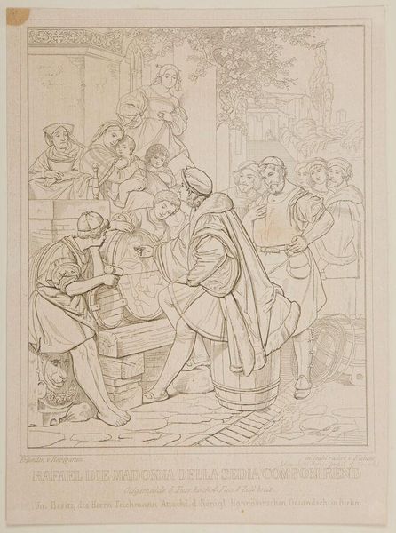 Daniël Veelwaard created this print titled "Man met een kind in een kraamkamer", or "Man with a Child in a Maternity Room". Veelwaard was working in the Netherlands during a period of significant political and social change, influenced by Enlightenment ideals and the rise of nationalism. Here, within the private sphere of the maternity room, we see the negotiation of gender roles and expectations. A man presents a child to a woman, surrounded by onlookers. The scene is ripe with anticipation and perhaps anxiety, as the arrival of a new child often solidifies or shifts dynamics within a family. It invites us to consider the labor, both physical and emotional, expected of women in childbearing and rearing. Veelwaard captures the vulnerability and dependence inherent in infancy, while also suggesting the social structures that shape our understanding of care and responsibility. The composition suggests the complex relationships and power dynamics at play within the domestic space. It gently pushes us to reflect on the expectations placed upon women and men in different historical moments.